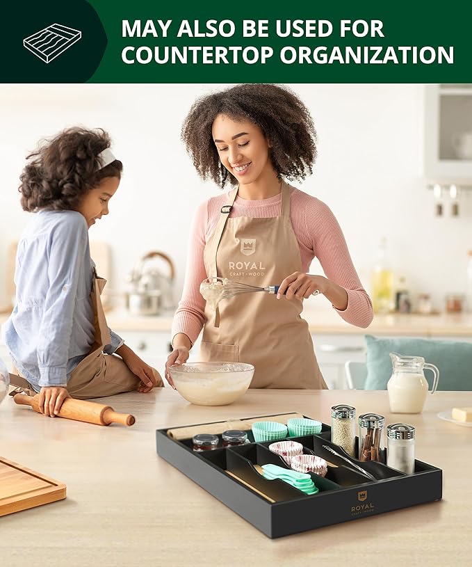 - THE KITCHEN DRAWER ORGANIZATIONAL SOLUTION YOU’VE BEEN SEARCHING FOR: Bring order and neatness to your chaotic kitchen with the Royal Craft Wood Utensil Organizer. Say goodbye to wasted time spent rummaging through drawers to find your what you need. With the silverware organizer, you will be able to easily retrieve any tool you need, when you need it, no guesswork involved. The drawer organizer kitchen utensil holder will transform your kitchen into a functional & practical space you can enjoy.