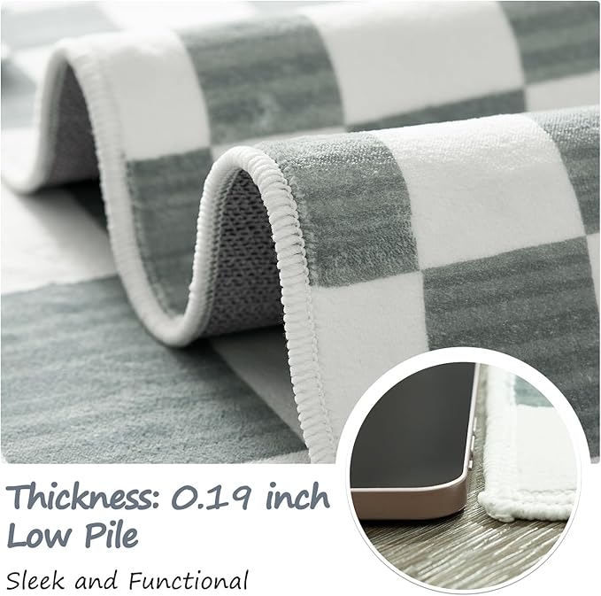 jinchan Runner Rug 2x6 Hallway Washable Modern Checkered Geometric Lattice Kids Bedroom Rug Indoor Floor Cover Non Slip Soft Carpet for Nursery Room Kitchen Laundry Room Home Grey