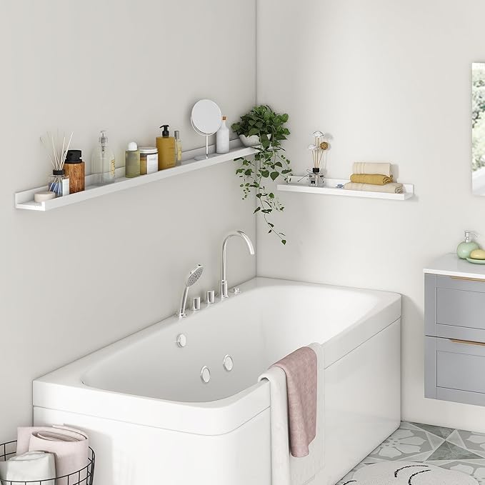- Multi-scene & Functional: The wall-mounted shelves are designed for decoration and storage, utilizing and decorating any space in your home. Used as shelf decor to show your collection, books, or prize, the hanging shelves are perfect for displaying your photo frame, small plants, model, or audio in your living room, office, study. And can also use as over the toilet storage shelf in the bathroom to hold toiletries or used as a kitchen shelf to store condiments