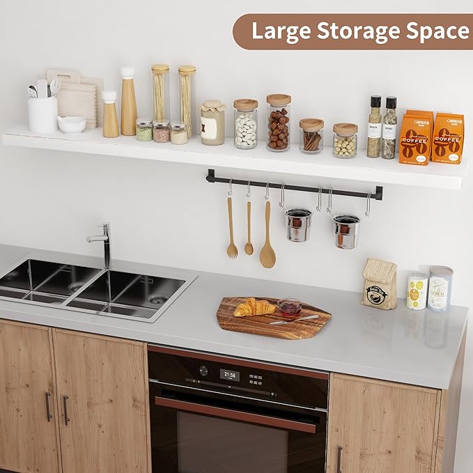 - 8" DEEP-MORE SPACE MORE TIDINESS: Axeman 72 inch floating shelves are designed to be deeper and thicker than traditional floating shelves, with a thickness of 1.37 inches and a depth of 8 inches. You can display a variety of items, such as photos, books, and knickknacks on these sturdy and spacious natural wood floating shelves