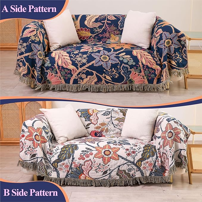 - DOUBLE-SIDED DESGIN - Give a fresh look for your sofa or bed in a few seconds, no worries about the front side or back side.You can use it as a sofa throw, a bed spread, a blanket or a decorative tablecloth and so on.