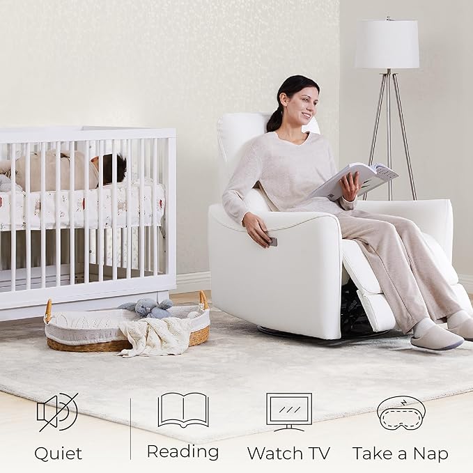 - Comfort: The power glider swivel rocker recliner chair is designed with Mom's comfort in mind, featuring a 270-degree swivel, glide, and quiet, smooth recline function that can be operated with the push of a button. The 90-135° recliner angle offers flexibility and versatility for maximum comfort.