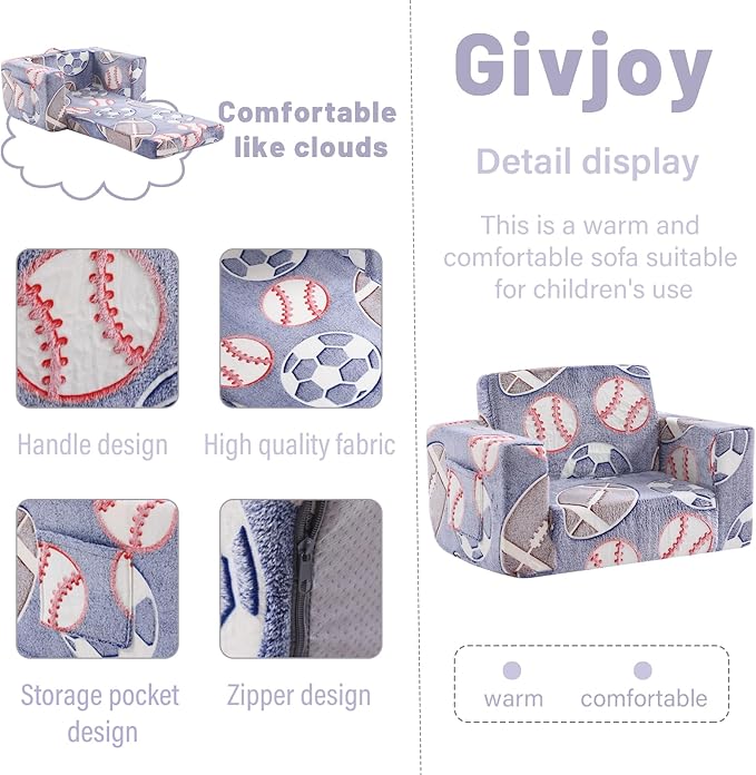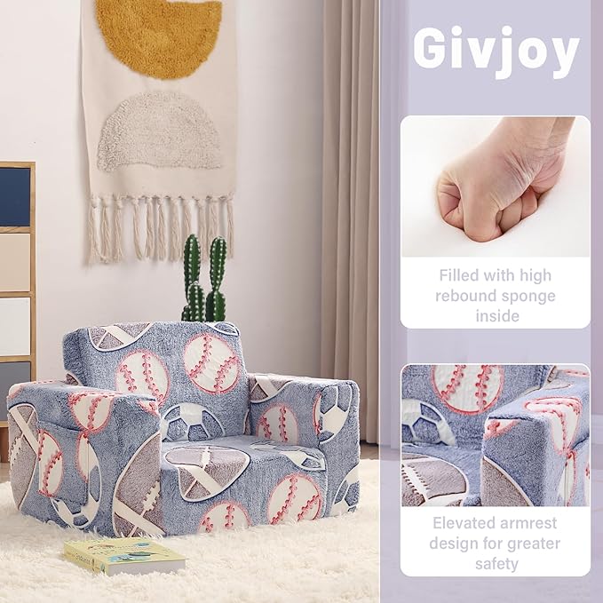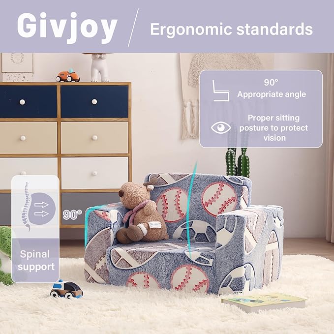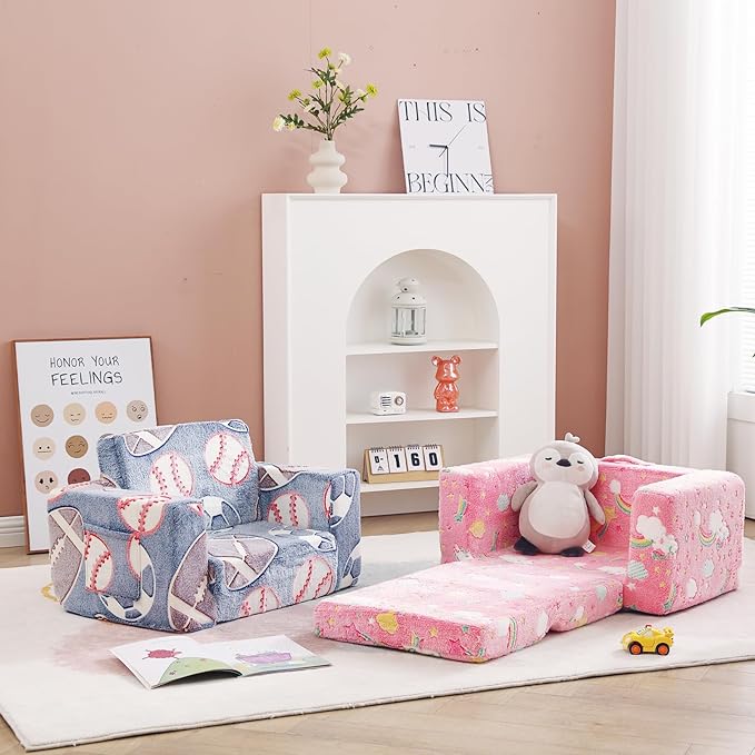 - 【Multifunctional 2-in-1 Design Unique Present for 18 months+ Boys and Girls】The 2-in-1 children's sofa couch is a wonderful present for all kids & toddlers on Birthdays, Christmas, or other occasions! Your child will find this small kids' couch a perfect spot for relaxing, reading, playing, or enjoying their favorite TV shows. Meanwhile, with both modern design and fashionable colors, this small couch can fit any room and add great vitality to your house.