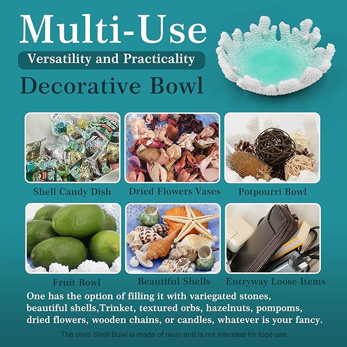 - [Beach coral decorations for home] This Turquoise coral decorative bowl is inspired by the serenity and allure of coastal living. With soothing hues and natural textures, it brings effortless beach charm to any home. Experience the feeling of being on a perpetual vacation at the seaside, all without exploiting our precious oceans. This coral decorative bowl perfect for modern coastal bowl decor and coastal decor for home