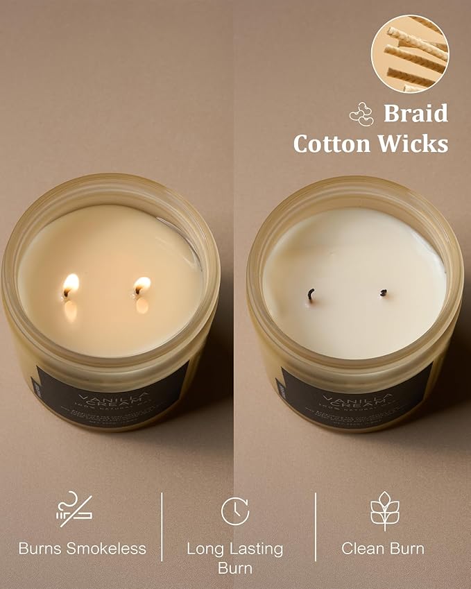 - 🌳 Clean Consistent & Even Burn - Using 2 American made lead-free cotton wicks for a even burn result. They're cotton flat braid wicks with paper throughout, providing increased rigidity and burn more consistently than 100% cotton wicks. Designed to reduce carbon buildup which leads to black soot.