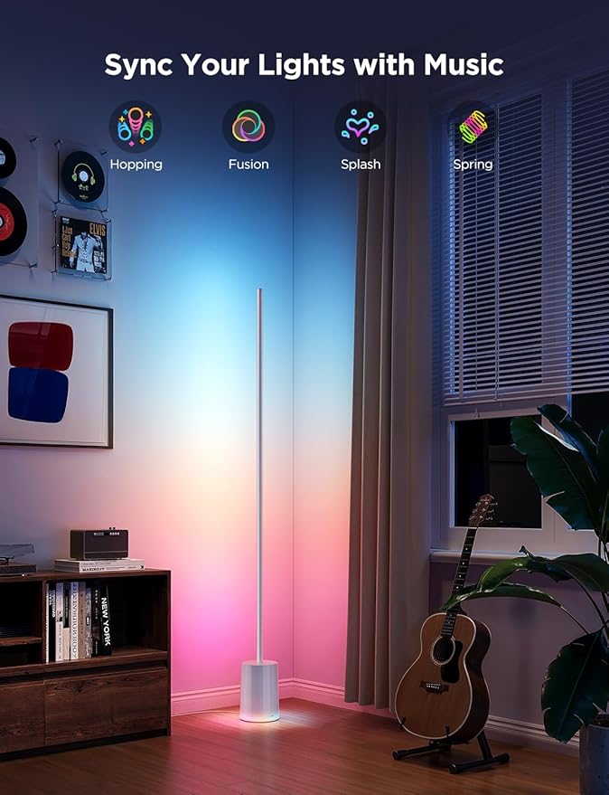 - Elevated Smart Home Experience: Effortlessly illuminate your smart living space with easy-to-customize timing settings. Also, sync this floor lamp and other Govee lighting products with a single tap for vibrant colors and scene modes. (Note: Supports 2.4 GHz WiFi only.)
