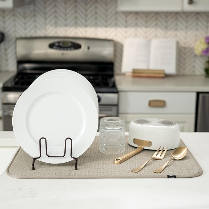 - Dish drying mats for kitchen counter are reusable, machine washable, and easy to store for kitchen organization; durable construction will not chip or break like a stone dish drying mat for kitchen