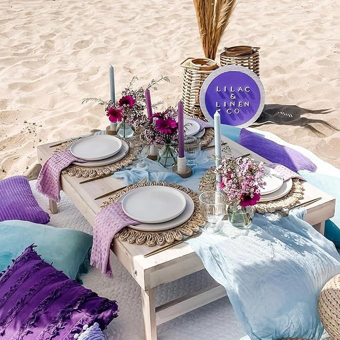 - 【Diversified Use】Boho cheesecloth Table Runner is necessary choice for beautifying tables. It's used for home decor, outdoor events, formal and informal setting in all seasons. Such as wedding decor, baby shower, bridal showers, parties, engagement banquet, Valentine's Day, Thanksgiving, Christmas.