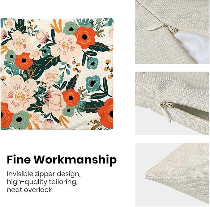 - 【Spring Pillow Covers】 Our floral throw pillow covers 20x20 inch are made of excellent breathable polyester linen fabric. The cream decorative pillow covers is durable, soft and skin-friendly. The plant outdoor pillow covers adopt exquisite edging technology and four sides of our floral pillow covers are sewn firmly, which is not easy to open the line.