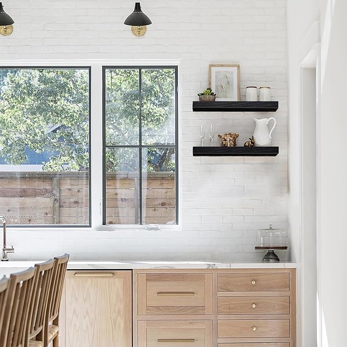 QEEIG Floating Shelves for Wall Bathroom Shelf Bedroom Kitchen Living Room Farmhouse Small Book Shelf 16 inch Set of 2, Black (015-B2)