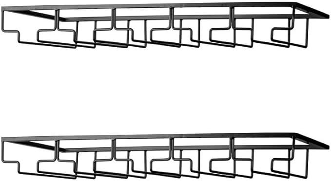 - 🍷SUITABLE FOR MULTIPLE GLASS TYPES - Depending on the size of the glass, each rack can hold up to 9 to 12 wine glasses with ease, suitable for a variety of glass types like Bordeaux/Burgundy glasses, Champagne glasses, cocktail glasses, etc. This wine glass rack also fits under most kitchen cabinets.