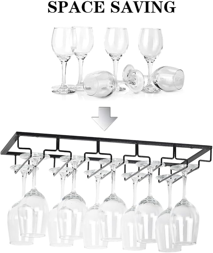 - 🍷SPACE SAVING: Offer you a neat and modern style kitchen, cabinet or mini bar. Our wine glass rack use the space under your cabinet as storage of your wine glasses, which takes little space.