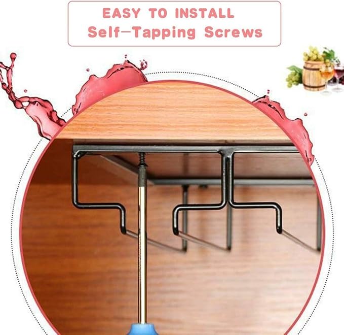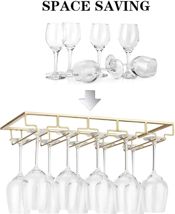 - 🍷EASY TO INSTALL: Comes with the mounting hardware, no advance drilling advance required, just a few minutes to complete the installation. Organize your stemware collection, keep your wine glasses under the cabinet.