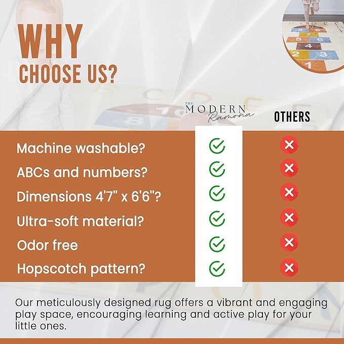 - ๐๐ฎ๐ ๐๐จ๐ซ ๐ ๐ฎ๐ง & ๐๐๐๐ซ๐ง๐ข๐ง๐ : All you need are some good neutral modern colors, hopscotch, and the alphabet, and you have the perfect toddler rug for your toddler room decor. One standout childhood memory of mine is playing hopscotch, and you better believe I was going to pass that experience down to my kids. Now adding the alphabet into the mix has increased the number of games and activities we can come up with using this play mat. This versatile Kids rug for playroom enhances your toddlers playroom decor while providing a playful and educational environment.