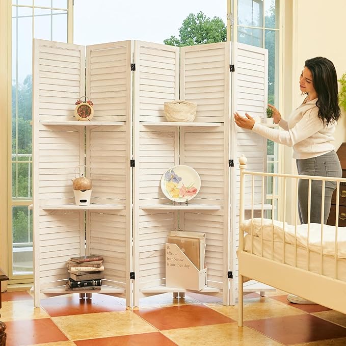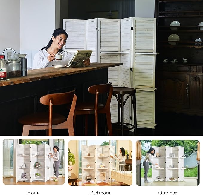 - Convenient Storage:The privacy screen can be used as a temporary wall for small spaces, and it also has three shelves to provide you with extra storage space. You can place photos, potted plants, books, aromatherapy, etc. on it
