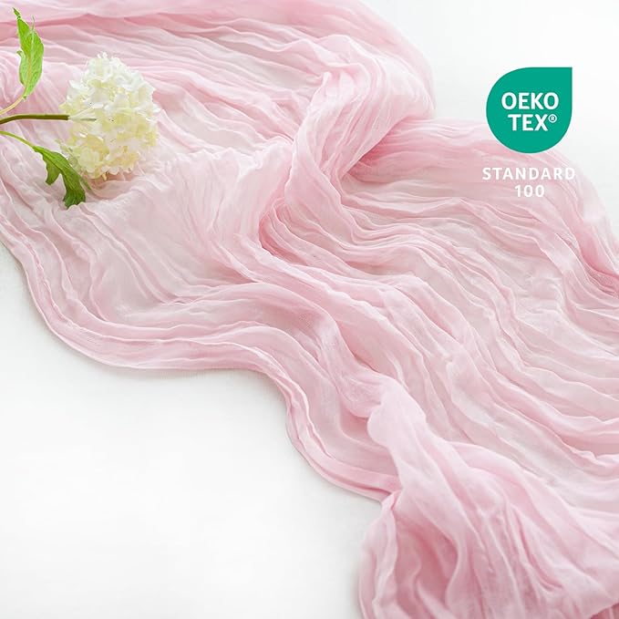 Sioloc 1 Pack Light Pink Cheesecloth Table Runner Fall Autumn Decor for 10ft(35" x120" ) Table Cloth for Tea Wedding Birthday Party Baby Bridal Shower Halloween Thanksgiving