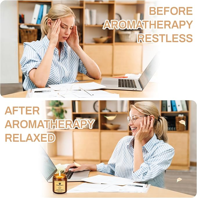 - 🌼Lavender Scented Candle - 7.6 oz lavender candle envelop your home with a rich natural lavender aroma. Lavender stress relief candles promote relaxation, improve sleep, and offer relief from anxiety, depression, and stress.