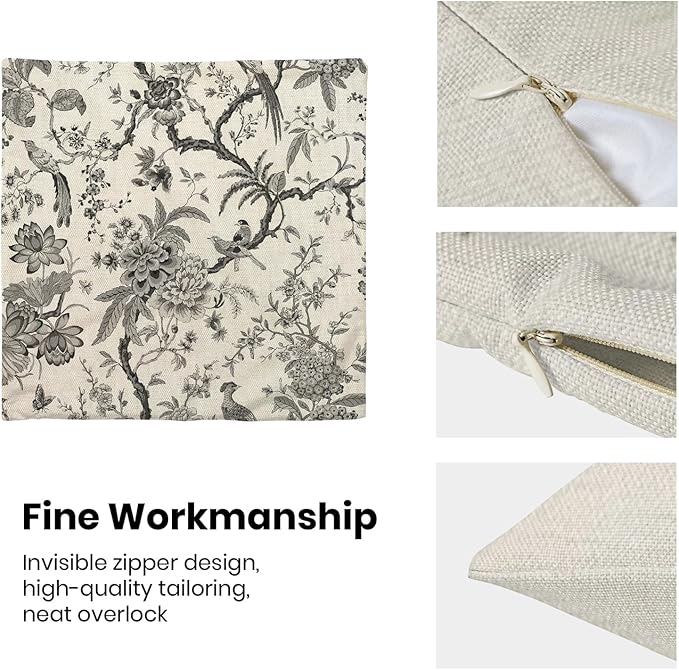 - 【Spring Pillow Covers】 Our Chinoiserie floral throw pillow covers 16x16 inch are made of excellent breathable polyester cotton fabric. The black and white floral decorative pillow covers is durable, soft and skin-friendly. The plant outdoor pillow covers adopt exquisite edging technology and four sides of our floral pillow covers are sewn firmly, which is not easy to open the line.