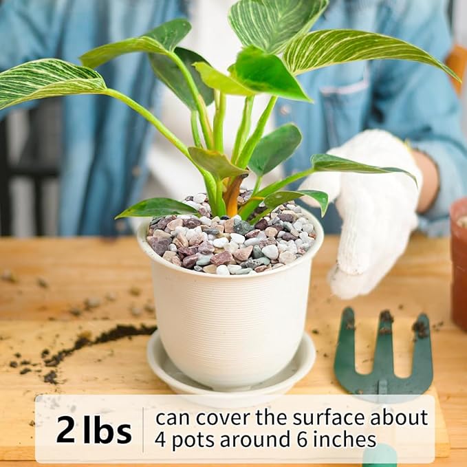 - 【Pebbles Size】These stones are packaged in a 2 pounds bag. The size is about 1/5 inch, it is perfect for succulent and cactus, as well as any vase or terrarium. The first picture shows the product in two states: dry and wet, and the pebbles color is more vibrant in the wet state