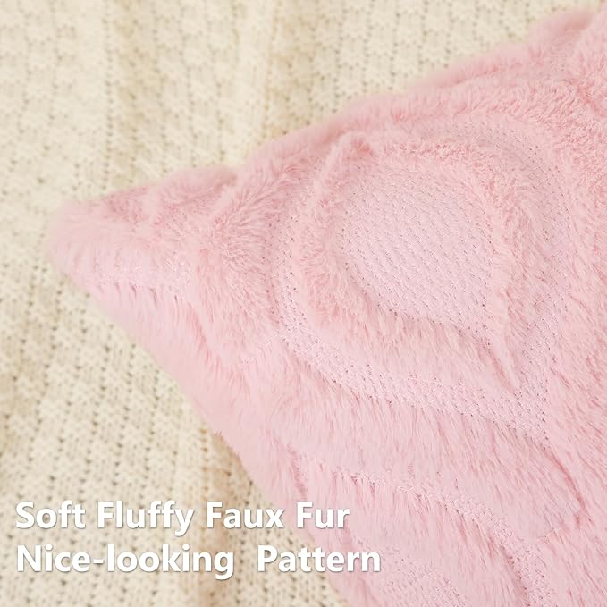 decorUhome Throw Pillow Covers 20x20 Inch Set of 2, Soft Plush Decorative Faux Fur Light Pink Solid Couch Pillow Covers, Accent Farmhouse Neutral Square Euro Pillow Cases for Sofa Bed Living Room