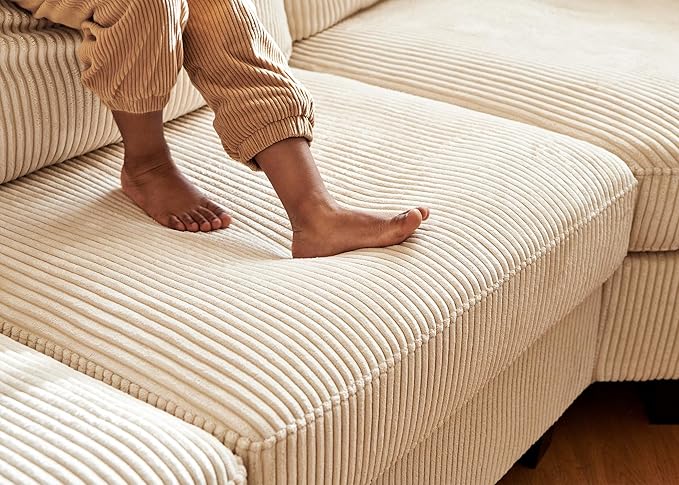 - Comfortable sectional sofa: The sofa has deep and wide seat, the sofa cushions are bouncy and plush, and the sitting sensation is very good