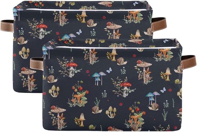 Storage Basket Bin Mushroom Snail Organizer Basket Collapsible Shelf Basket Cube with handle for Nursery Bedroom Bathroom, one sizex1