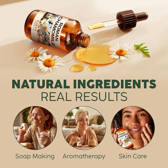 - Roman chamomile oil for skin. Soothe complexions and upgrade your skincare routines with roman chamomile oil for face and skin. Simply add 2-3 drops to your lotions, moisturizers or serums and enjoy a nourishing touch to your skin.