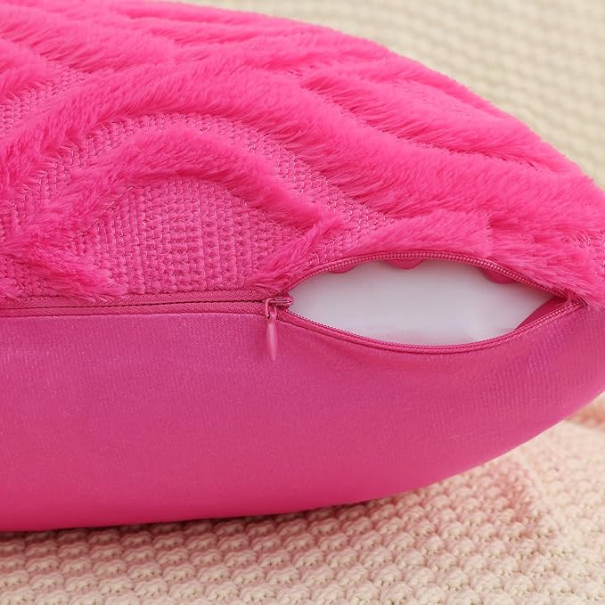 decorUhome Fall Throw Pillow Covers 20x20 Inch Set of 2, Soft Plush Decorative Faux Fur Hot Pink Solid Couch Pillow Covers, Accent Farmhouse Neutral Square Euro Pillow Cases for Sofa Bed Living Room