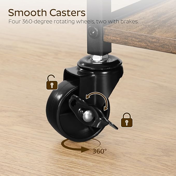- Thoughtful Design: Four swivel casters (2 with brakes) allow you to move the service cart anywhere or lock it in place. The fence design on each tier is practical and visually appealing, preventing items from falling during transportation