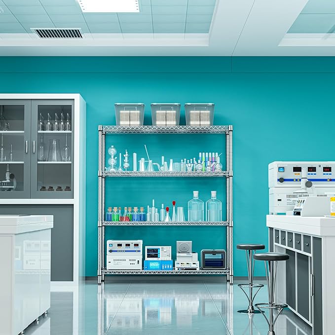 1760 LBs 4 Tier Storage Rack Metal Wire Shelving Unit, Storage Standing Shelf Organizer for Laundry Bathroom Kitchen Pantry Garage Utility Room, Chrome 17.7" D x 59.1" W x 70.4" H