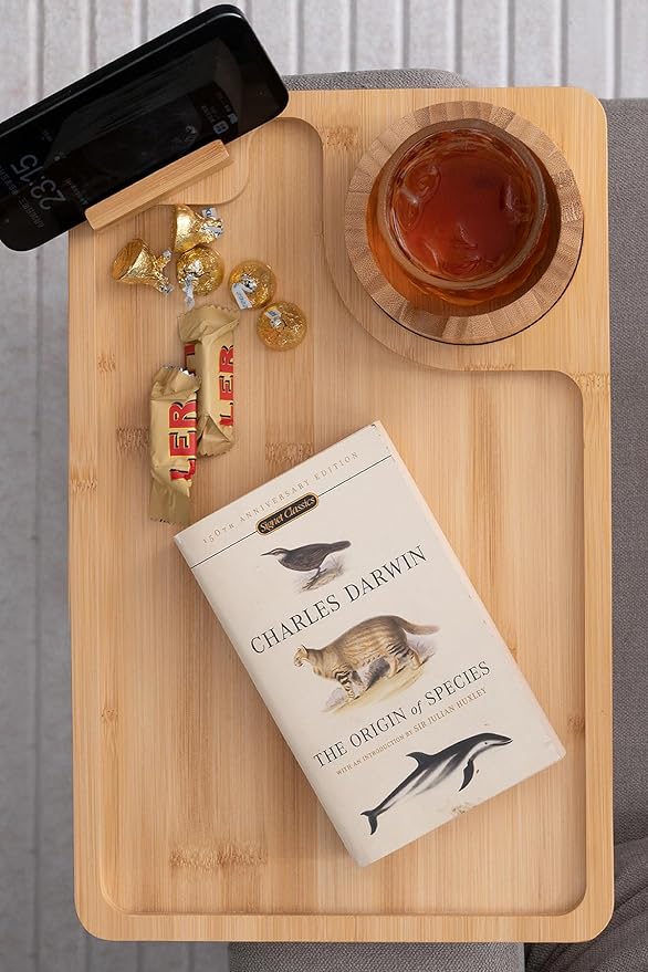 Sofa Arm Tray, Bamboo Large Couch Cup Holder, Portable Anti-Spill Sofa Armrest Tray for Beverage, Snacks, Phone, Remotes