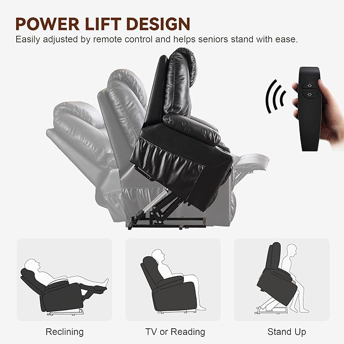 SALOHZA Power Lift Recliner Chair for Elderly with Massage and Heat for Living Room, Electric Recliner Chair for Adults with USB/Type C Port/Cup Holders, PU Faux Leather, Black