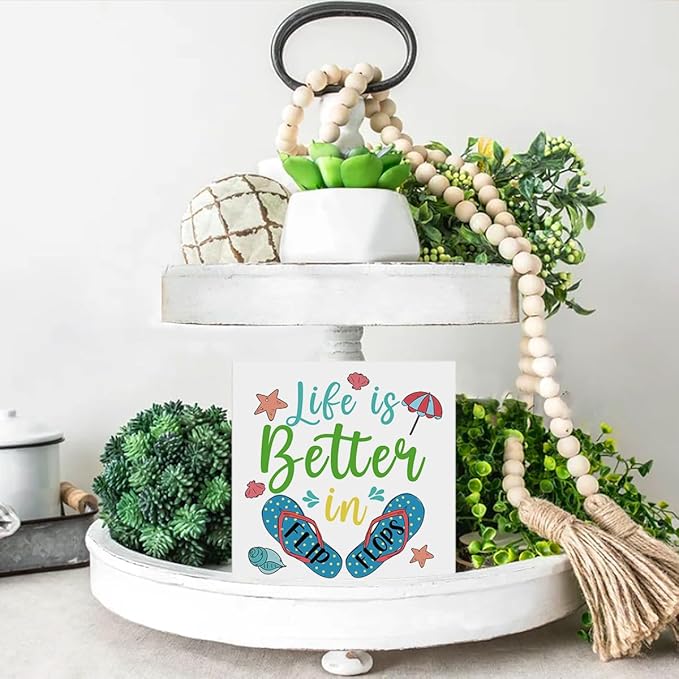 Summer Decor Beach Decorations Flip Flop Wooden Sign Rustic Home Decor 5 x 5 Inches