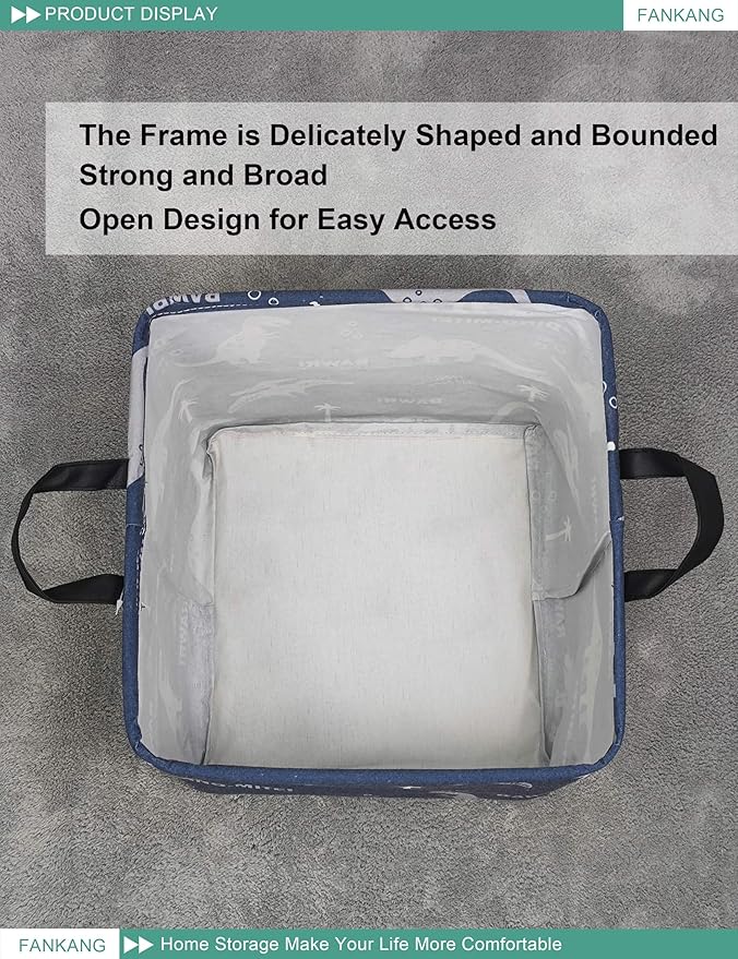 FANKANG Square Nursery Hamper Storage Bins Canvas Laundry Basket Foldable with Waterproof PE Coating Storage Baskets Gift Baskets for Children, Office, Bedroom, Clothes(Square-Blue dinosaur )