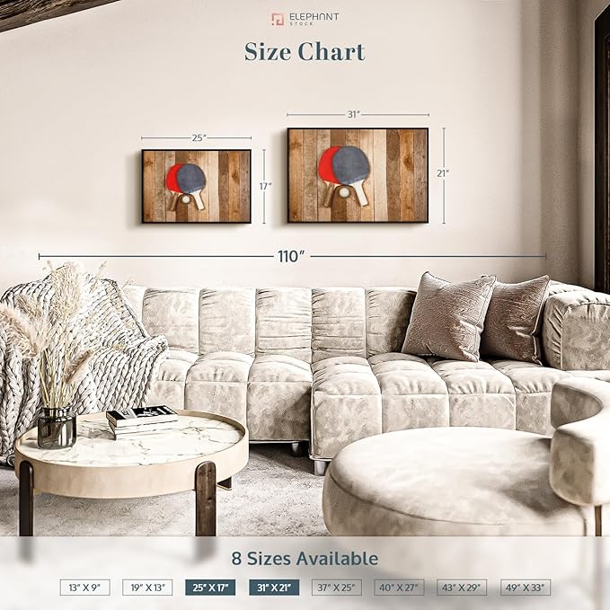 - Durable Canvas Features - Our long-lasting racket sports 1-Piece canvas is made from a non-fading UV and Humidity-resistant 330 GSM Polyester Canvas. This Wooden Ping Pong canvas can be used as a minimalist living room wall art.
