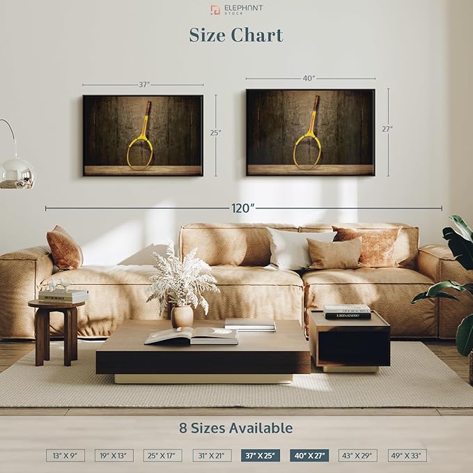- Durable Canvas Features - Our long-lasting racket sports 1-Piece canvas is made from a non-fading UV and Humidity-resistant 330 GSM Polyester Canvas. This Vintage Tennis Racket canvas can be used as a modern living room wall art.