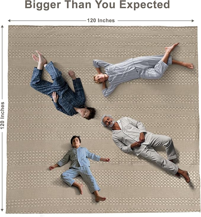PHF 100% Cotton Waffle Blanket Oversized King 120"x120", Lightweight Breathable Extra Large 10'x10' Summer Blankets for Bed, Giant Big Luxury Aesthetic Woven Bedding for Home Decor, Simply Taupe