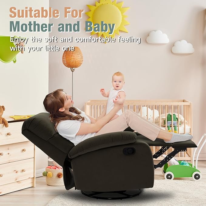 - Velvet Swivel Rocking Chair: The brown rocker recliner chair is made of velvet with the touch of velvet, providing a unique visual effect. Small rocker recliners for small spaces has a simple and fashionable design, making the recliner rocking chair suitable for all occasions. And the small rocker recliners for small spaces unique anti-scratch performance, soft and comfortable touch, easy to care and very well match with other other leather swivel rocker recliner living room chairs in your home