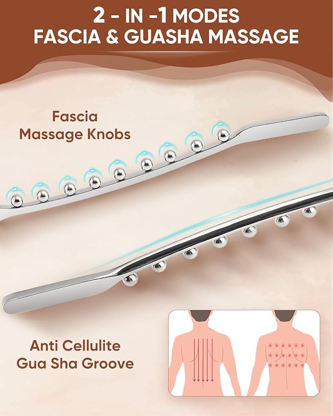 - 2-IN-1 FASCIA & GUASHA MASSAGE TOOL: Apply deep tissue fascia pressure massage, to effectively relieve muscular pain & tension. Apply guasha scraping massage to perform lymphatic drainage and boost circulation, reduce cellulite and remove fat, shape a perfect body