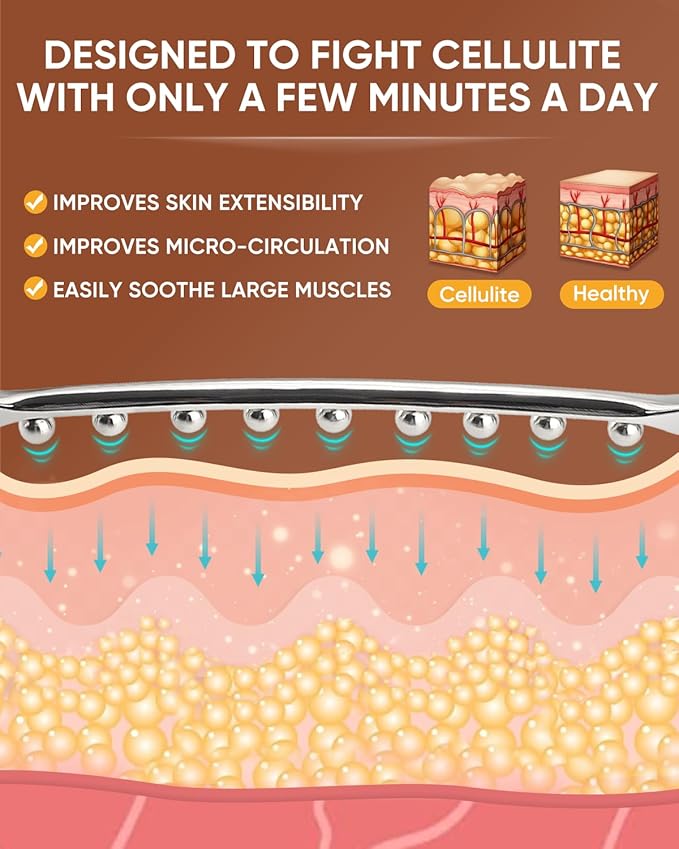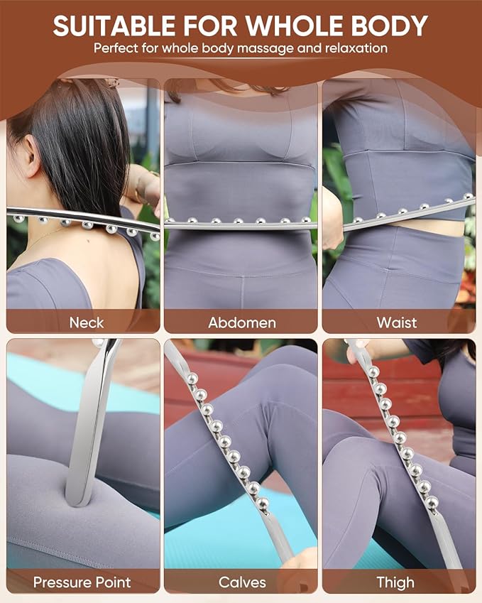 - ERGONOMIC DESIGN FOR WHOLE BODY USE: Handheld handle provides handy grip. Pressure point massage balls can apply pressure to instant relieve your body pain, and guasha groove can scrap your skin to promote lymphatic drainage and reduce cellulite