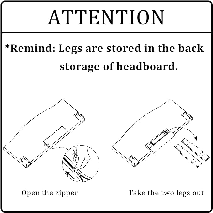 - EASY INSTALLATION: Unzip the zipper of headboard back, get legs and hardware and easily assemble within 15 minutes. We put the legs and tools needed for installation in the back compartment of upholstered headboard