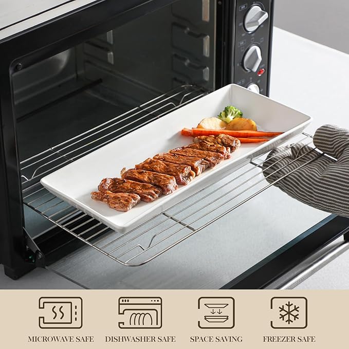 - Sturdy and Stable: Our 14-inch serving tray stand comes with 3 layer sturdy metal stand with three of white rectangular ceramics trays, providing ample space to elegantly present your food and desserts, The black metal rack is robust, and stable,foldable, allowing to flexibly adjust angles and convenient access to food. Our tiered platter stands firm while holding your favorite delicacies. Whether it’s delicate pastries or savory bites, rest assured the serving stand will make your display secure and eye-catching.