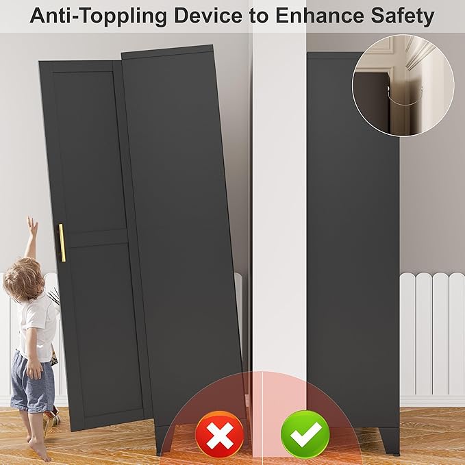 - Multiple Uses: The metal storage cabinet perfect for storing towels, soap, cleaning supplies and cleaning cloths in bathroom; storing food, tableware in the kitchen; storing clothes, bags and bedding in the bedroom; storing games, puzzles, books and crafts in the living room. The black cabinet can be used in kitchen, laundry room, bathroom, garage, utility room, bedroom, living room, office, dinning room, entryway etc