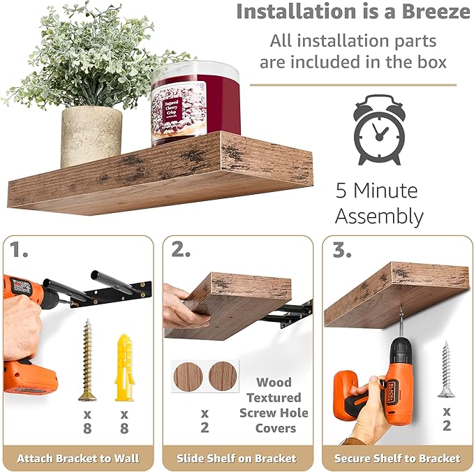 - Decorate & Display: The Sorbus Decorative Shelf for Wall adds character to any modern, traditional, rustic, or farmhouse home & kitchen decor styles - Contrast wall-mounted shelves at staggering heights on the wall for an energetic result - Mount side-by-side for a clean, streamlined look. Enhance decor and fill in empty wall space above a desk, fireplace, entryway, vanity, between windows, or bathroom shelves