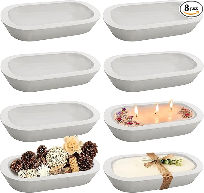 Royxen 8 Pack Wood Dough Bowl, Wooden Dough Bowls Paulownia, Rustic Bowl Vintage, Bowls for Candle (White, 9.5" x 5.5")