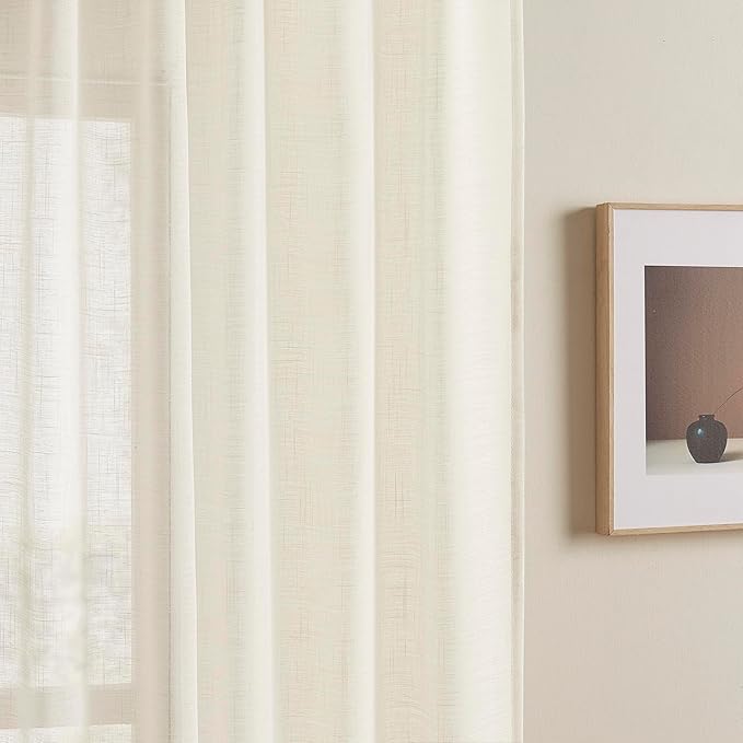 Joydeco Sheer Linen Curtains for Living Room, White Curtains 90 Inches Long 2 Panels Set, Rod Pocket Back Tab Window Privacy Assured with Light Filtering(W52 x L90 Inch,Linen)