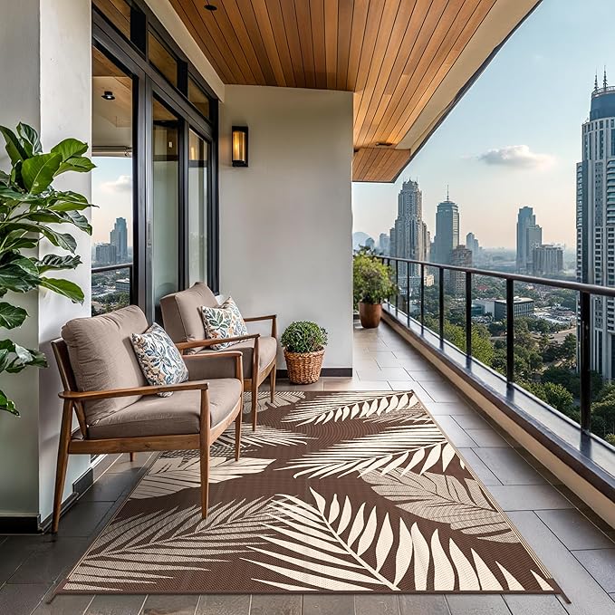- Palm Leaf Design & Double-Sided Pattern: GENIMO reversible fall outdoor rug is designed with a double-sided pattern, completing the unique layout of multiple palm leaves. The 2 shades of coffee and beige achieve the ultimate fusion. Either side can blend perfectly with nature and look very full and comfortable, making it a versatile piece for fall decor