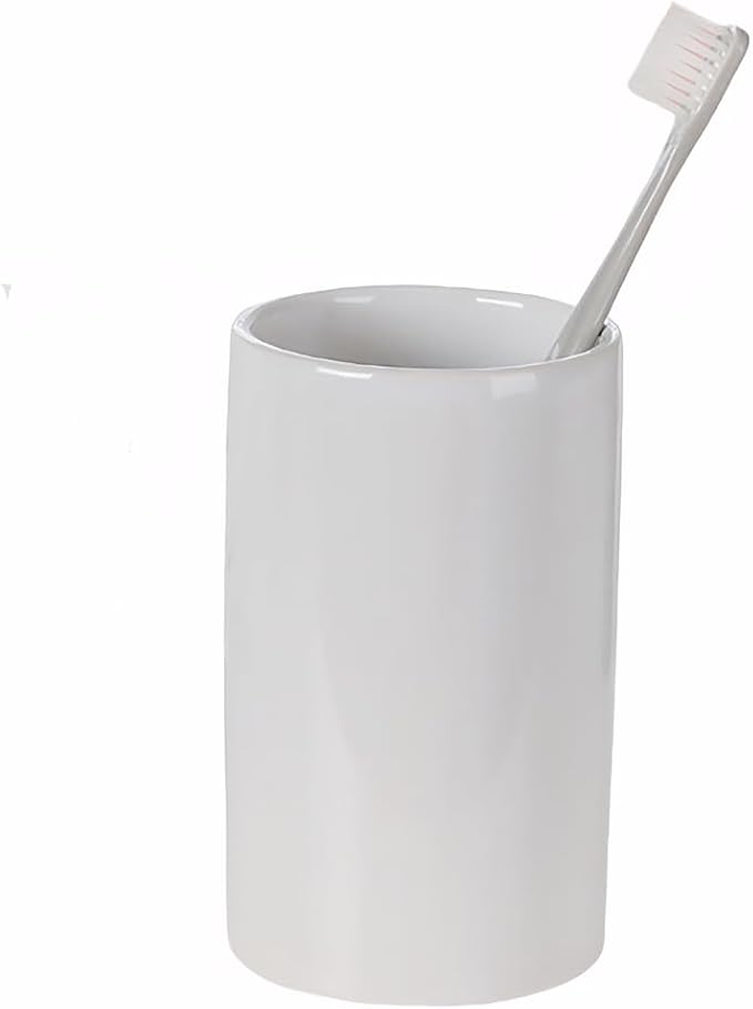 White Ceramic Toothbrush Holder, Tumbler Cups Reusable Toothbrush Mouthwash Cup,Makeup Brush Holder, Bathroom Counter Organizer(300ml)