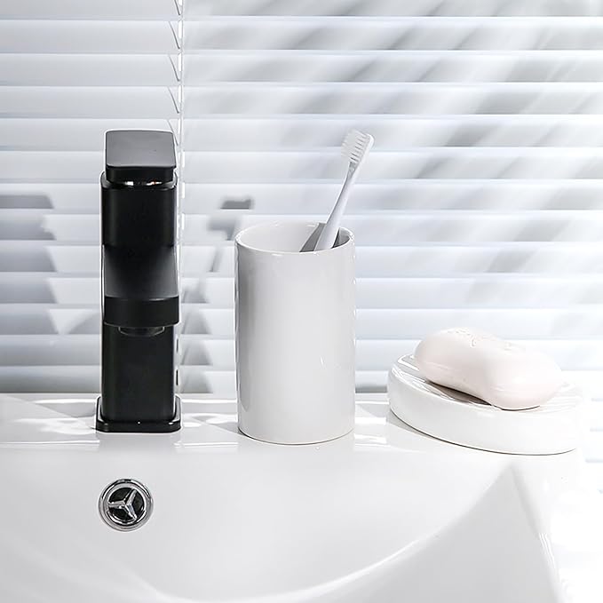 - Space-Saving Solution: Designed to maximize your bathroom space, this ceramic toothbrush cup is compact yet spacious enough to hold all your essentials, keeping your countertop neat and organized