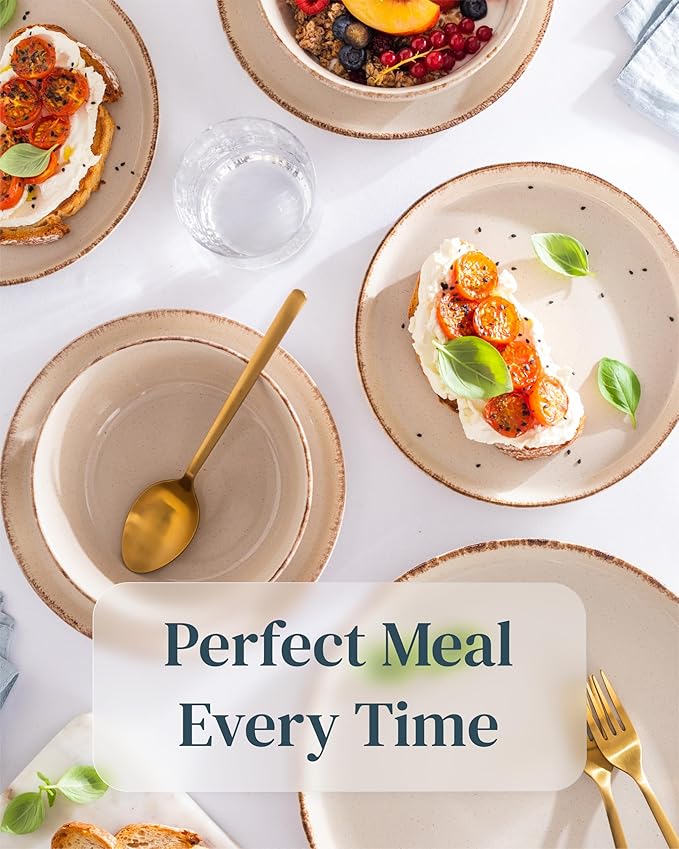 - ✅ BRING RUSTIC CHARM TO YOUR HOME: Elevate your dining experience with this 12-piece dinnerware set in rustic beige stoneware, adding a touch of elegance and coziness to your table setting.